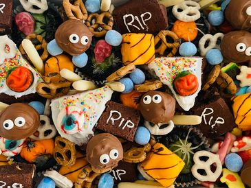 Spook fest 2021. Halloween graze box are officially here and will be available 29th | 30th | 31st only. Mixture of eye popping cake pops, goolish cup cakes, boo hoo 👻 cakes, chocolate bone, spooky sweets and more.